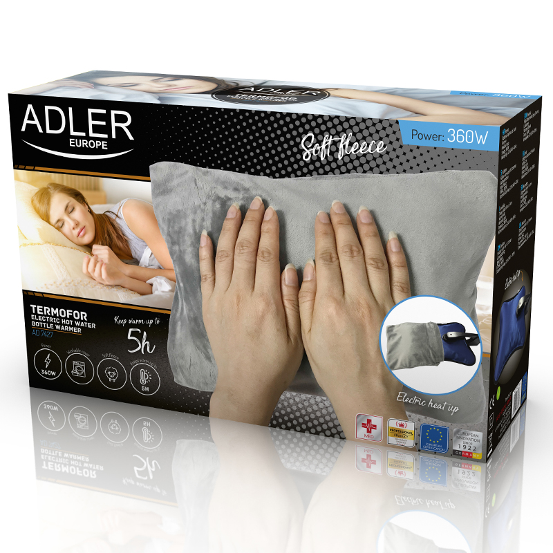 Pernă electrică cu apă Adler AD 7427, 360W, cu husă moale din lână