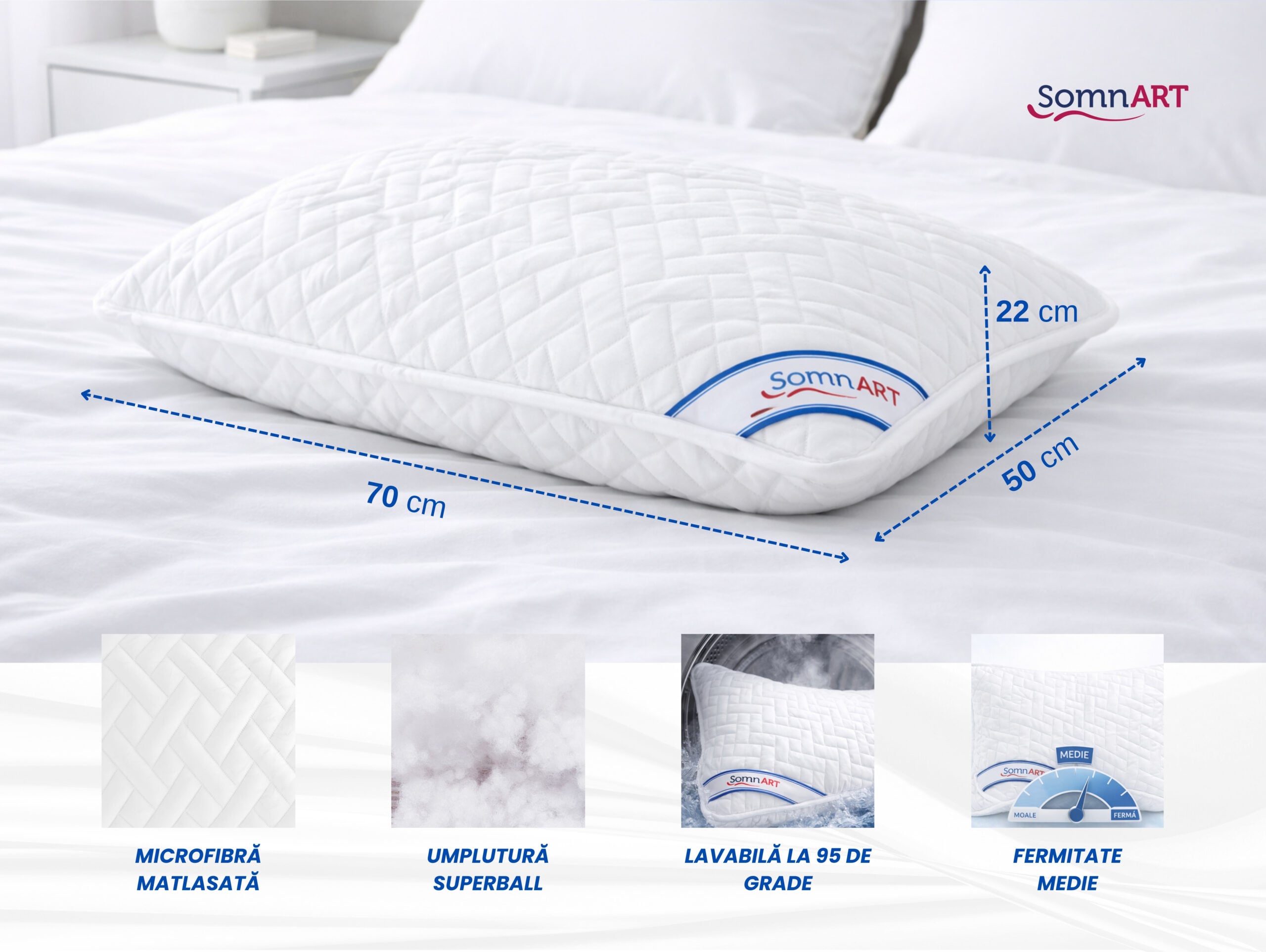 Prin materialele atent alese si nivelul bun de sustinere, aceasta perna Somnart este ideala pentru dormitoare moderne, camere de oaspeti sau utilizare de zi cu zi, oferind un echilibru foarte bun intre confort, rezistenta si igiena.