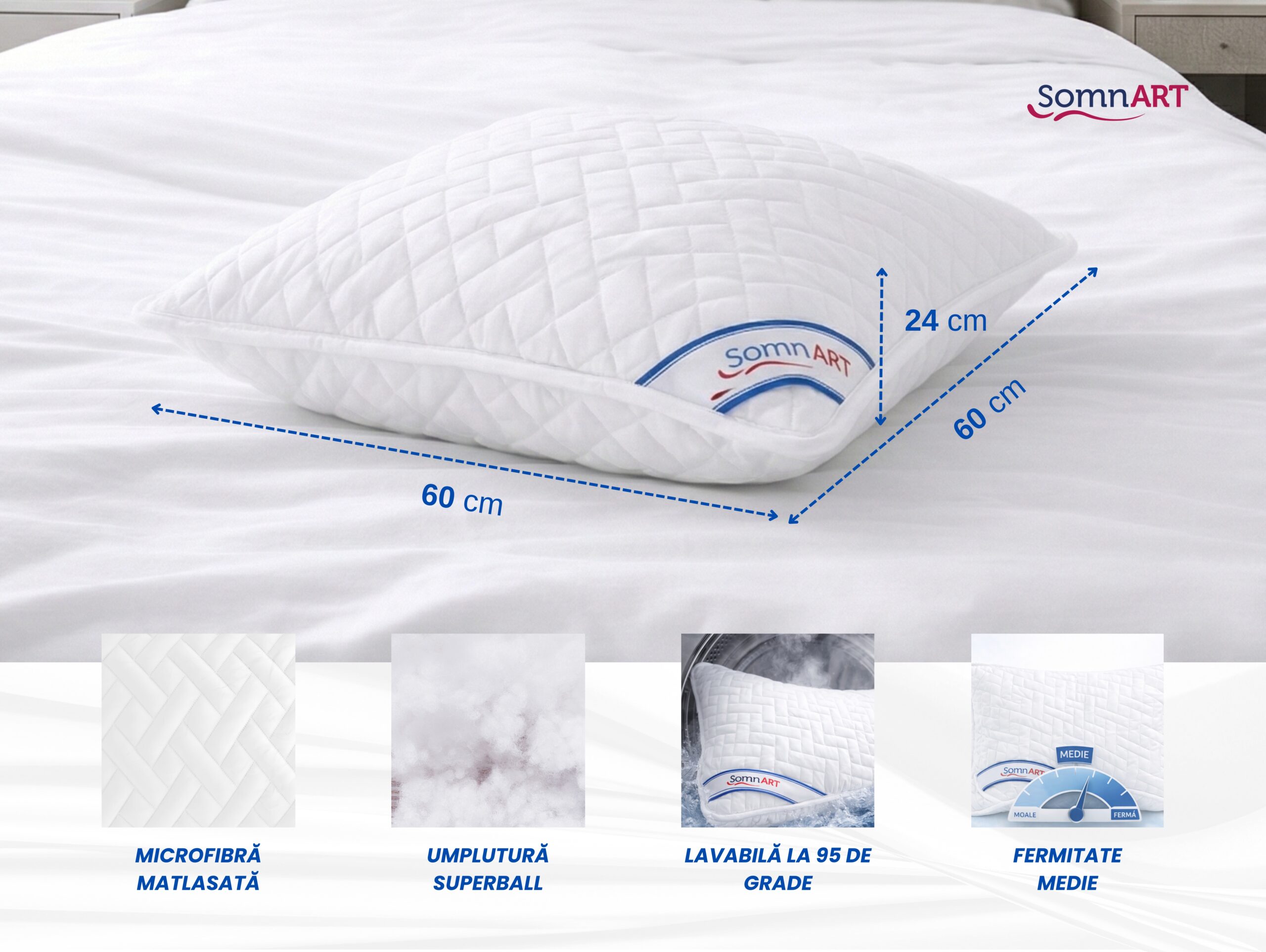 Certificările de calitate, inclusiv standardul Oeko-Tex, confirmă atenția acordată siguranței materialelor. Dacă îți dorești o pernă lavabilă 60x60, confortabilă și rezistentă, acest model este o alegere practică pentru un somn odihnitor în fiecare noapte.
