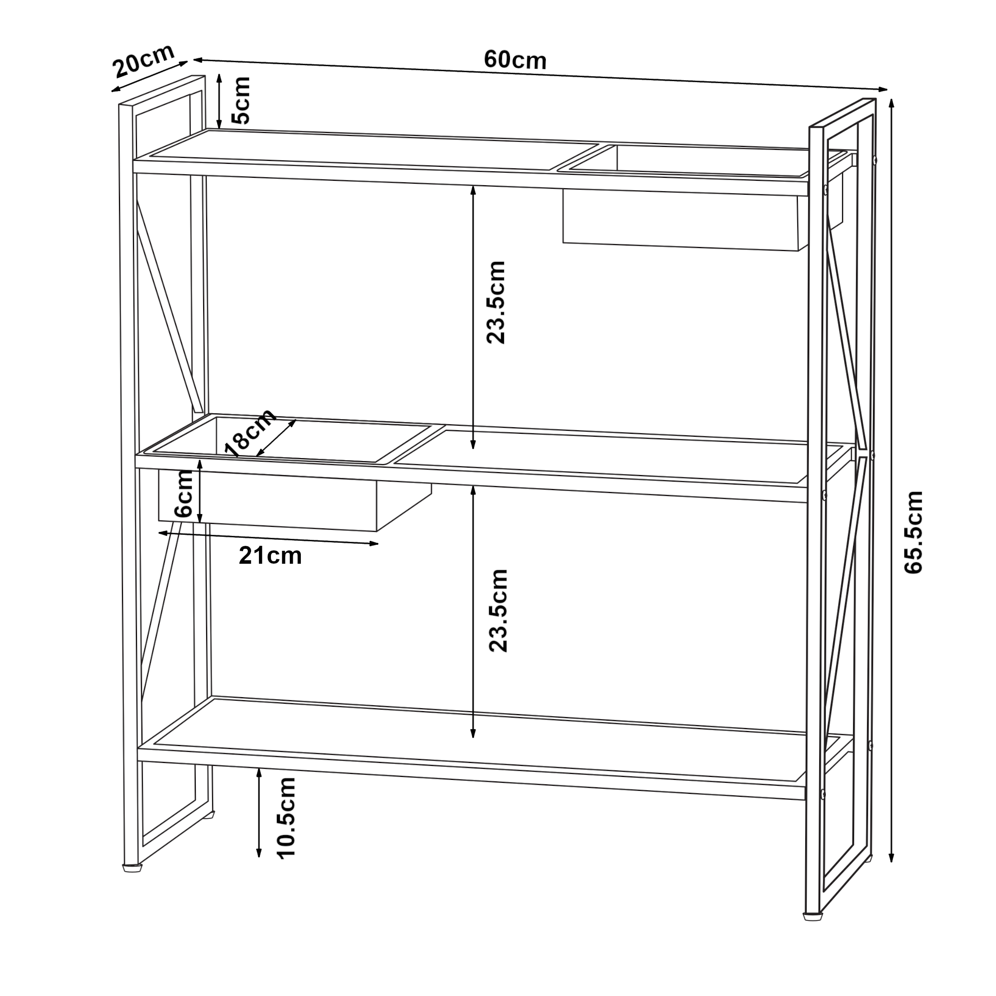 - Abstand zwischen den Ablagen: je 23,5 cm