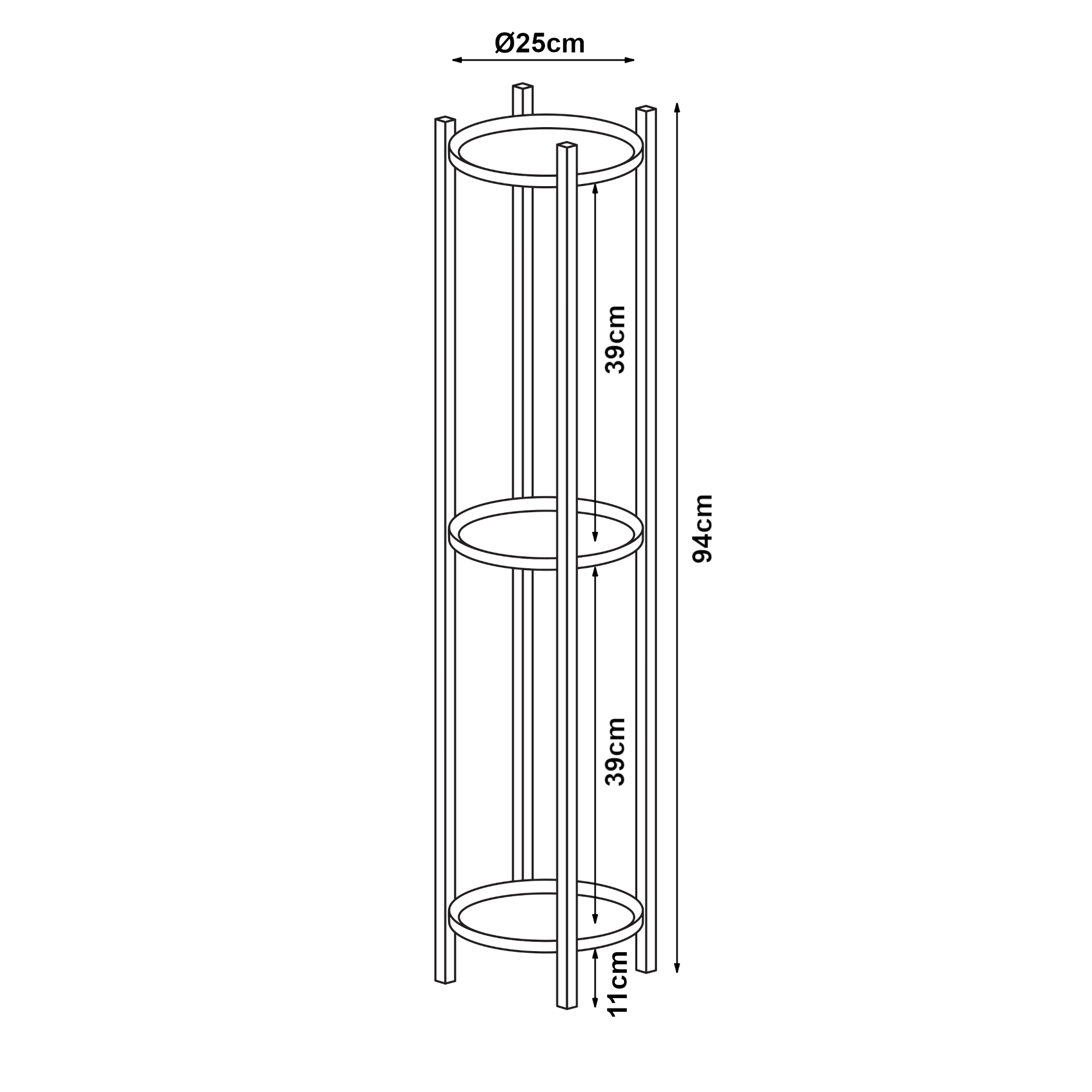 - Abstand zwischen den Ablagen: je 39 cm