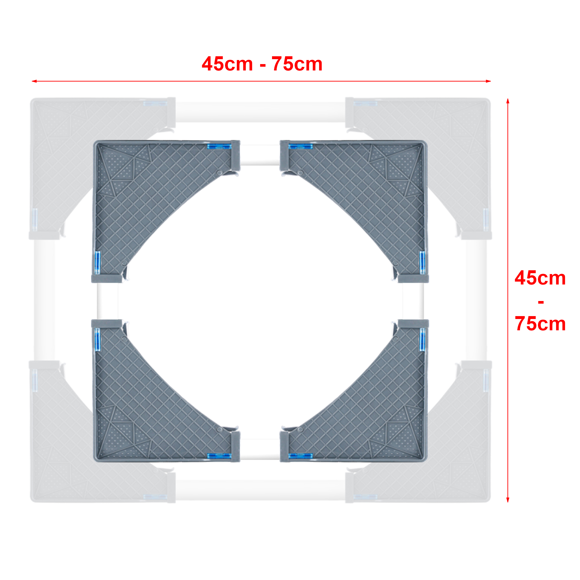Acest piedestal suprainaltare electrocasnice se potriveste de exemplu pentru masina de spalat, uscatorul de rufe sau frigider. Cu ajutorul acestei rame veti putea suprainalta electrocasnicele dvs, astfel protejandu-le impotriva umezelii. Piedestalul este prevazut cu amortizoare de cauciuc care asigura stabilitatea masinii, estompeaza zgomotul si vibratiile cauzate de masina de spalat in timpul programului de spalare.