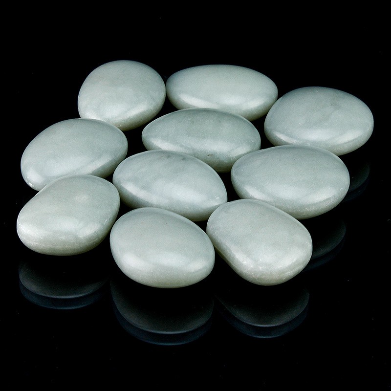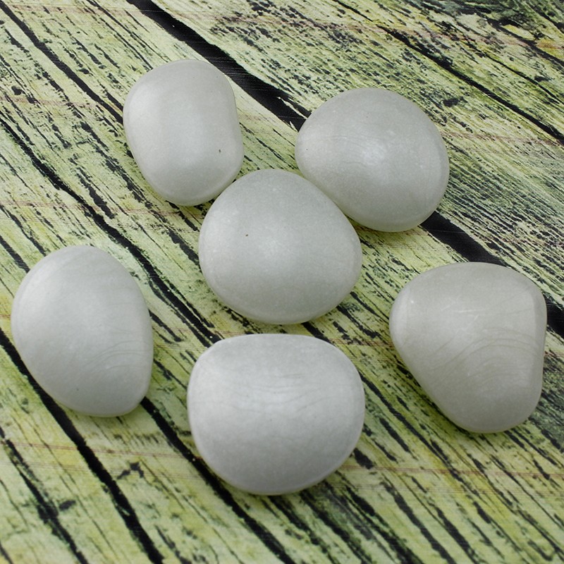 Pietricelele fosforescente glow sunt de culoare gri in lumina, iar in intuneric acestea lumineaza in culoarea aqua fosforescent. Prietricelele au diametrul aproximativ 4 cm.