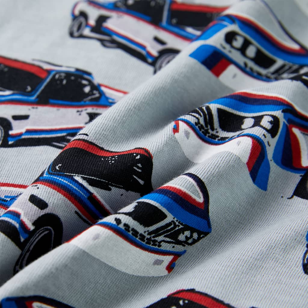 Această pereche de pijamale pentru copii cu mâneci scurte are un decolteu rotund, talie elastică și o croială dreaptă. Această pijama pentru copii are un imprimeu complet cu mașini. Pijamalele pentru copii sunt realizate din material moale, 100% bumbac, pentru un plus de confort și respirabilitate.