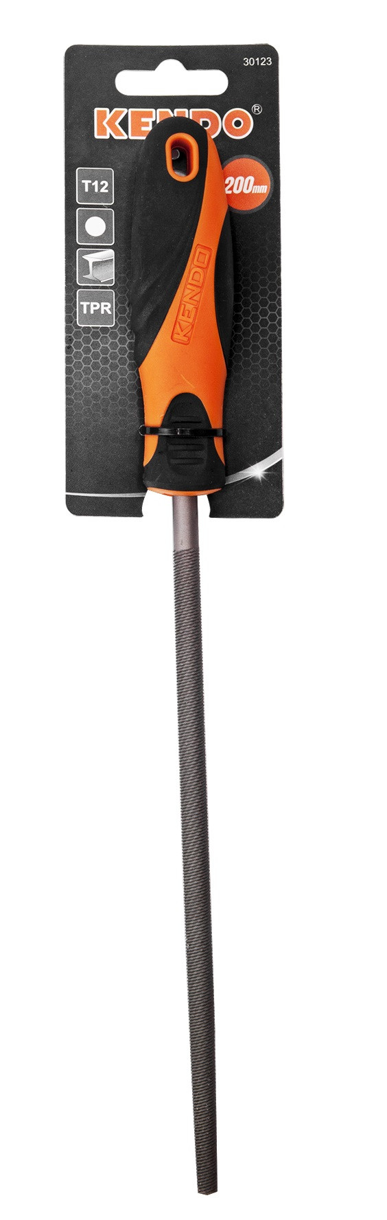 Pila rotunda cu o lungime totalade 200 mm cu o rugozitate de nr.2 (grosieramedie) cu un maner ergonomic, moale, din cauciuc termoplastic (TPR).