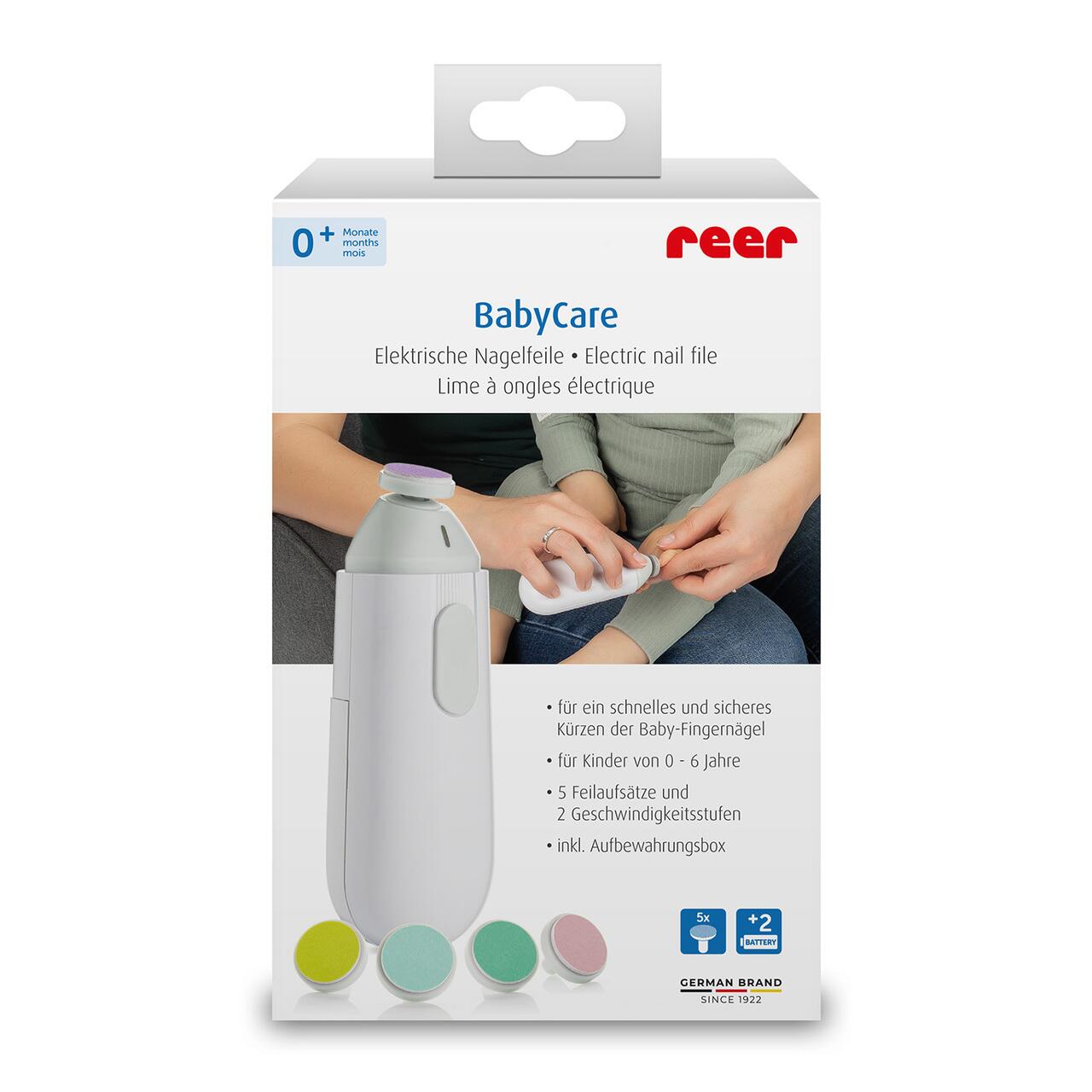 Cu pila electrica de unghii BabyCare de la Reer, poti taia unghiile bebelusului usor si cu delicatete, fara niciun risc de accidentare.