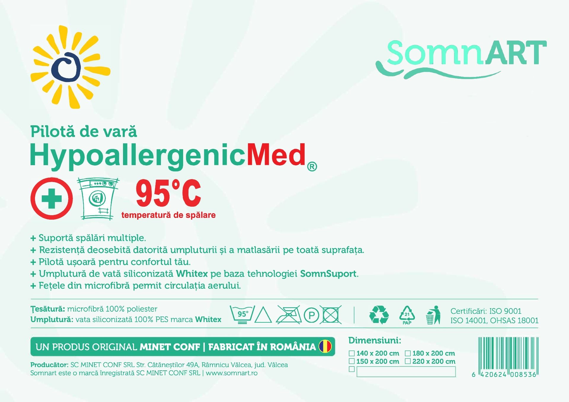Descriere Pilota vara Somnart HypoAllergenicMed 200x220 cm,
