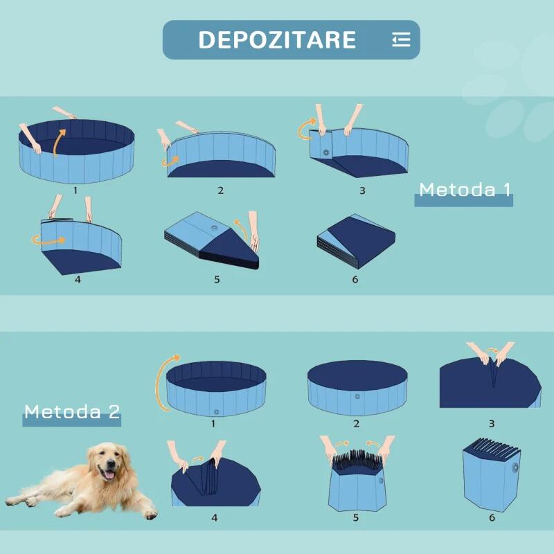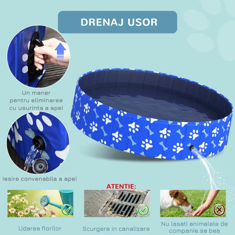 - Versatilitate maximă: Poate fi folosită atât ca piscină pentru câini în timpul verii, cât și pentru baie pe tot parcursul anului.