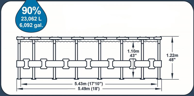 Construită pentru rezistență și utilizare îndelungată, această piscină de grădină cu cadru metalic are structură din oțel rezistent la coroziune și sistem Seal & Lock pentru îmbinări sigure și stabile. Pereții laterali sunt realizați din material DuraPlus, un strat triplu ranforsat, conceput pentru durabilitate ridicată și protecție împotriva perforării.