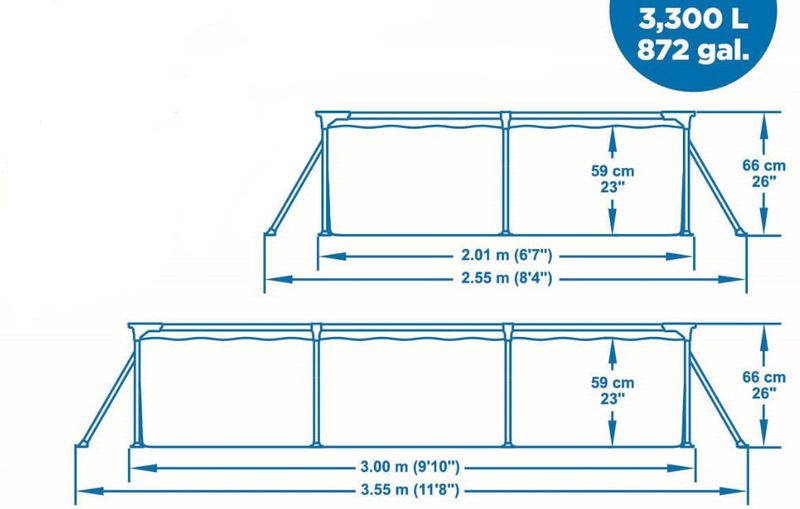 Așază piscina pe o suprafață plană, montează cadrul conform instrucțiunilor, umple cu apă și conectează pompa de filtrare. Este ideală pentru utilizare în sezonul cald, în curte sau grădină, pentru copii și adulți.