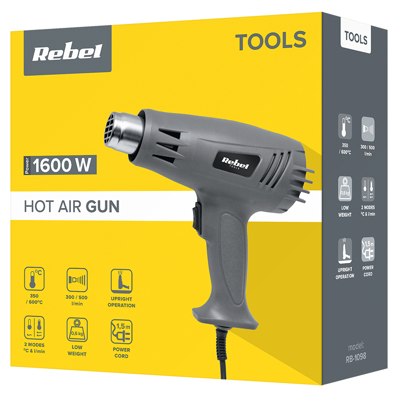 Specificatii PISTOL CU AER CALD 1600W REBEL