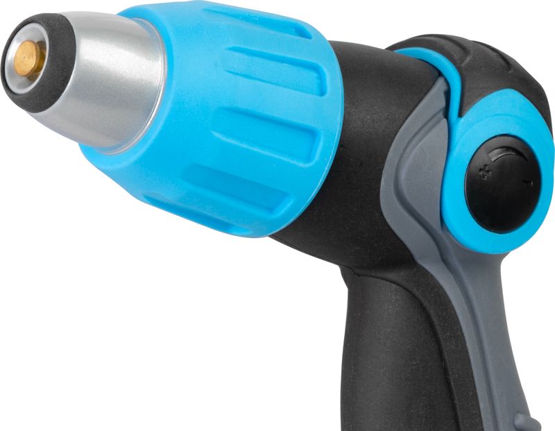 Acest pistol de stropit gradina permite reglarea usoara a debitului de apa si adaptarea tipului de jet, de la flux fin pana la pulverizare, fiind ideal pentru diverse activitati din curte si gradina. Manerul anti-alunecare asigura o prindere sigura chiar si in conditii de umezeala.