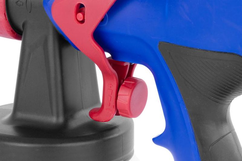 Utilizare: Umple recipientul cu vopsea compatibilă (dacă este nevoie, diluează conform indicațiilor producătorului vopselei), conectează la priză și pulverizează de la o distanță constantă, cu mișcări paralele. Pentru rezultate bune, aplică în straturi subțiri.