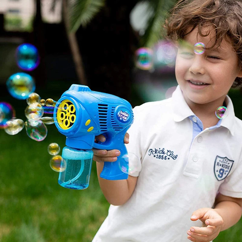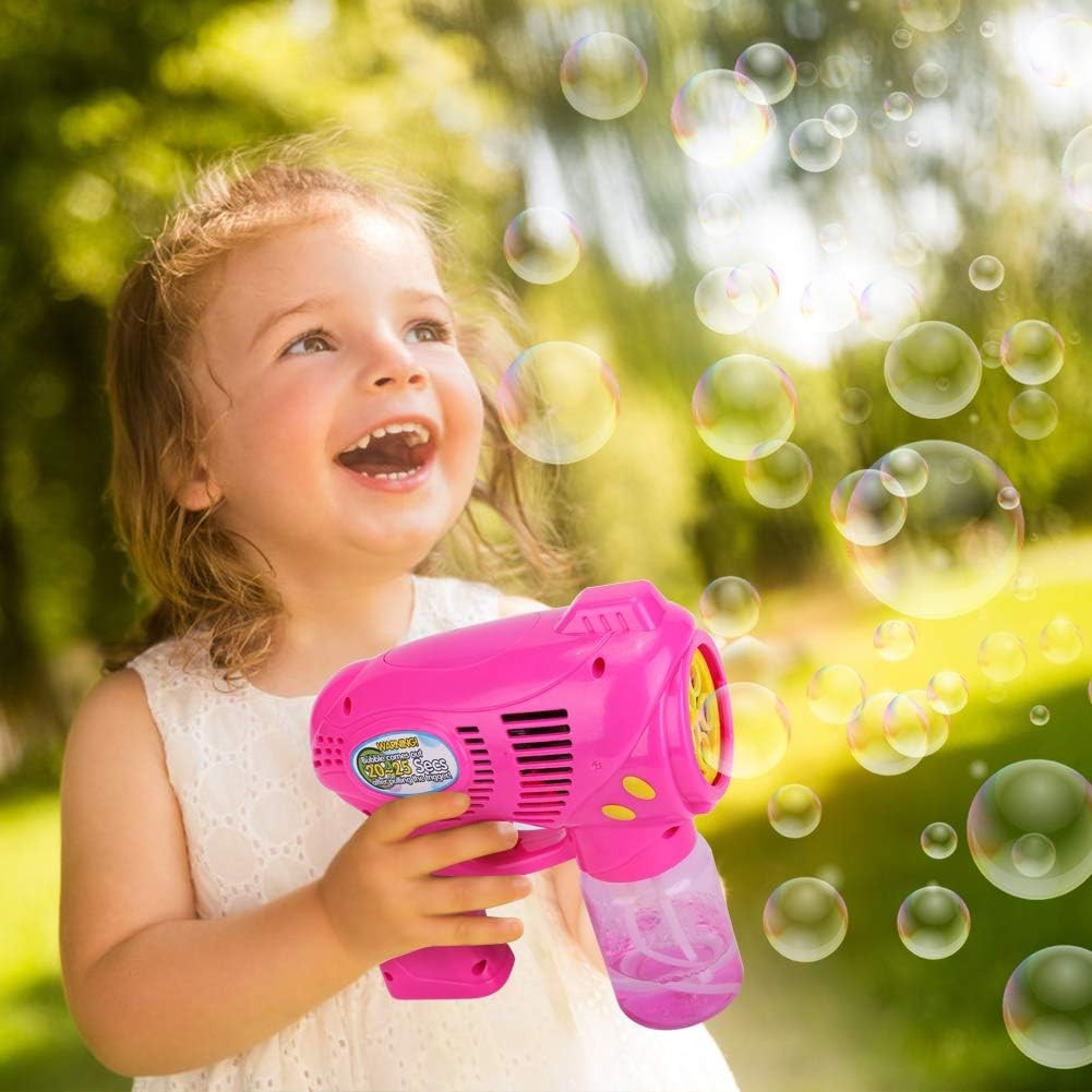 Pistolul electric pentru baloane de sapun este un accesoriu distractiv si usor de utilizat, perfect pentru petreceri, evenimente sau momente de joaca in aer liber. Cu un design atractiv si functionalitate excelenta, acest pistol genereaza rapid baloane de sapun, aducand zambete si veselie tuturor. Dispozitivul este echipat cu un rezervor de solutie de 150 ml, suficient pentru sesiuni indelungate de divertisment si 5 orificii prin care baloanele sunt eliberate simultan, creand un efect spectaculos. Pistolul poate genera in doar 5 minute pana la 10.000 baloane de sapun si este prevazut cu lumini si muzica pentru a fascina micutii in timpul utilizarii.