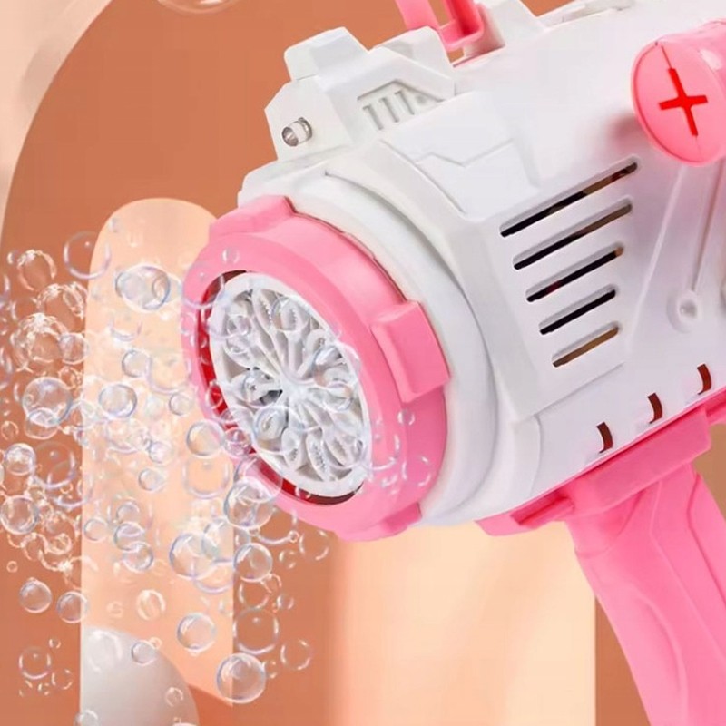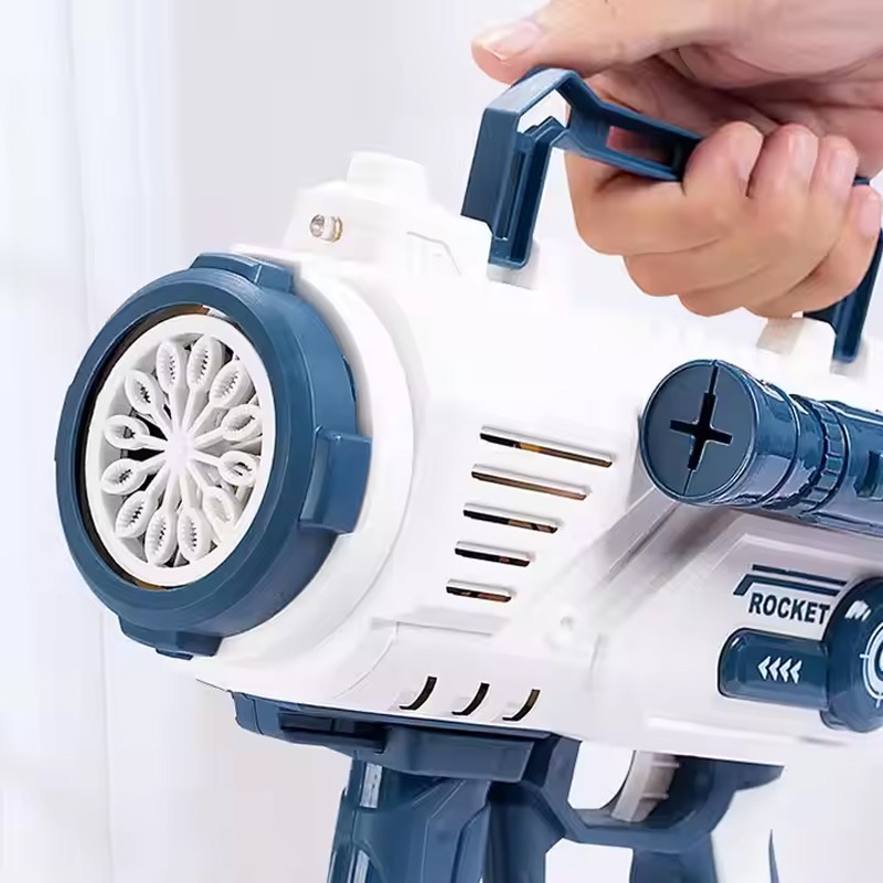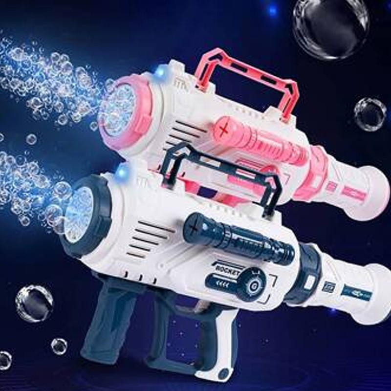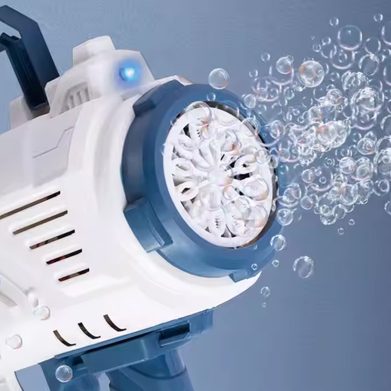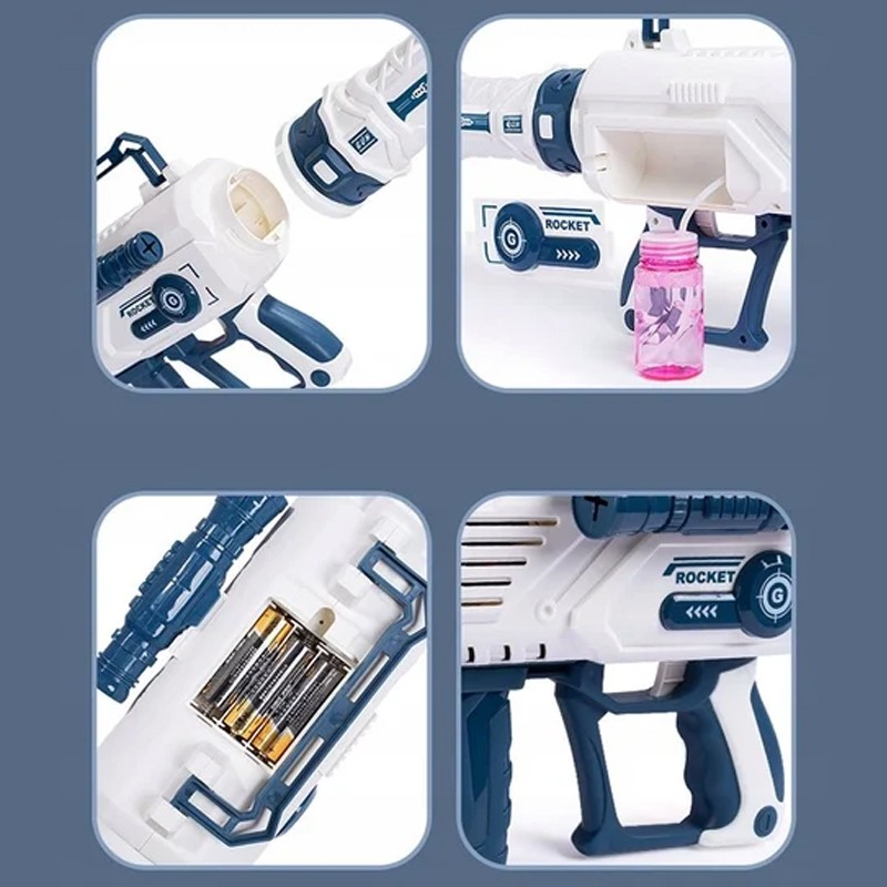 Pistolul creeaza o ploaie de baloane de sapun, eliberand simultan baloane prin cele 12 orificii, oferind un spectacol de baloane viu si dinamic, pe cand luminile integrate si efectele sonore creaza o atmosfera plina de veselie in timpul jocului. Acesta ofera o experienta multisenzoriala prin combinatia de sunete si efecte luminoase, care sporesc placerea de a crea baloane de sapun.