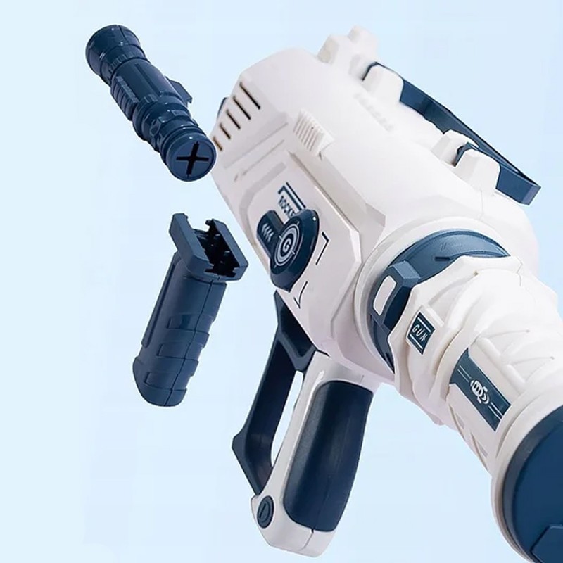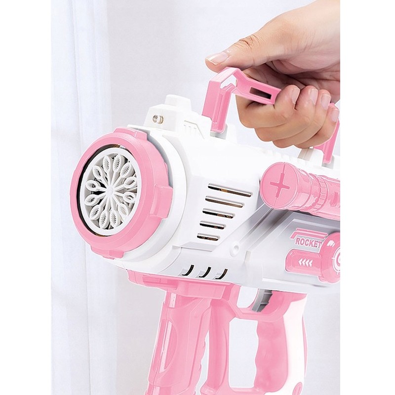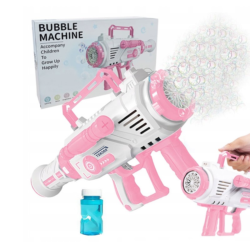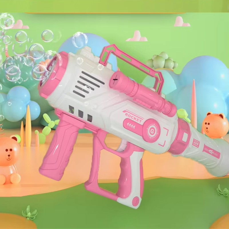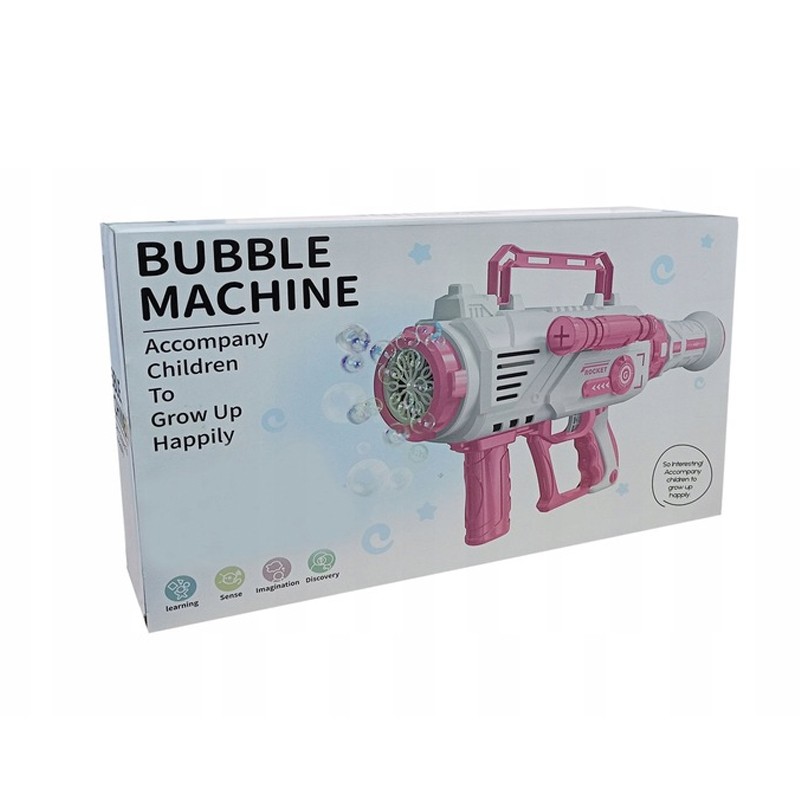 Pistolul creeaza o ploaie de baloane de sapun, eliberand simultan baloane prin cele 12 orificii, oferind un spectacol de baloane viu si dinamic, pe cand luminile integrate si efectele sonore creaza o atmosfera plina de veselie in timpul jocului. Acesta ofera o experienta multisenzoriala prin combinatia de sunete si efecte luminoase, care sporesc placerea de a crea baloane de sapun.