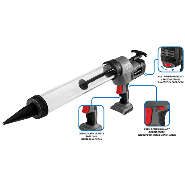 Pistol pentru cartuse de silicon compatibil cu acumulator 18V GRAPHITE ENERGY+ 58GE115 HardWork ToolsRange
