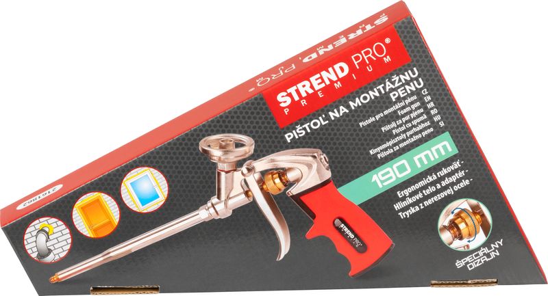 Pistolul pentru spumă poliuretanică (PUR) Strend Pro este alegerea potrivită pentru aplicări curate și controlate la lucrări de montaj și izolare. Corpul din aluminiu cu finisaj cromat și duza din inox oferă durabilitate, iar mânerul ergonomic asigură o prindere confortabilă în timpul utilizării.