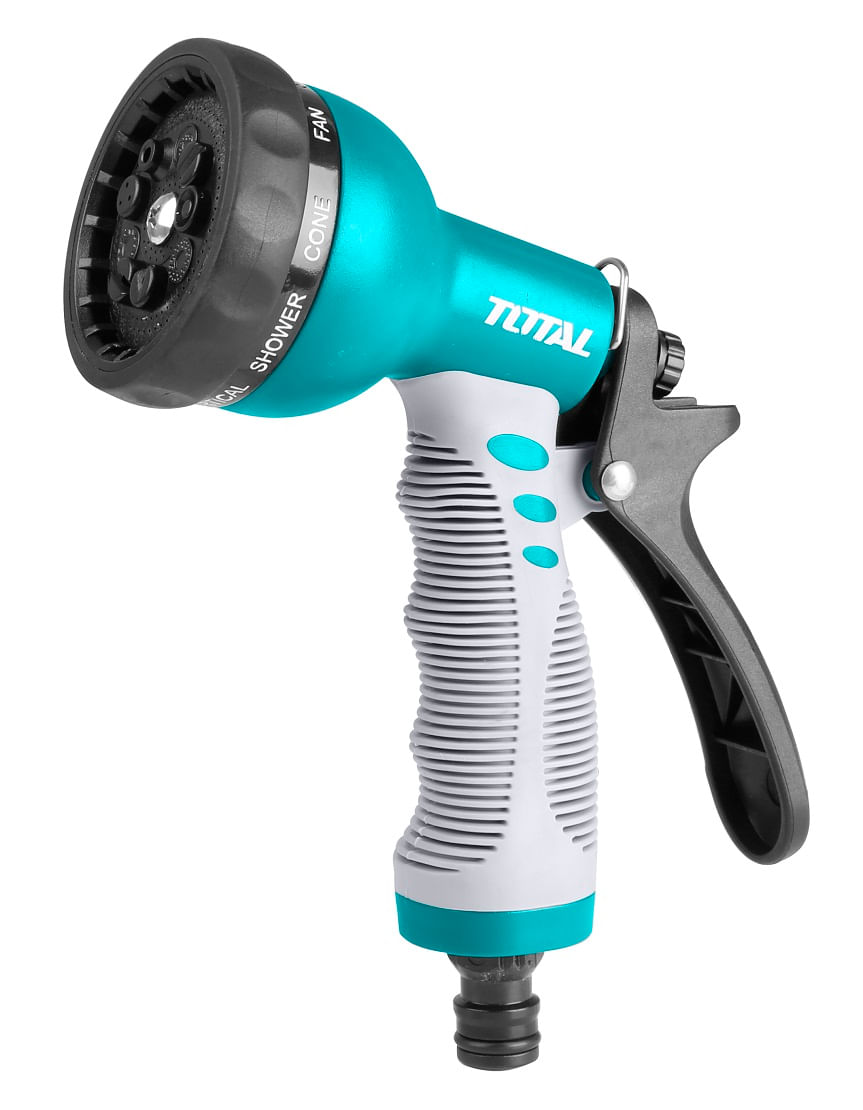 Transformă udarea și curățarea în activități simple cu pistolul pentru stropit Total cu 9 funcții. Alegi rapid tipul de jet potrivit (de la pulverizare fină la jet puternic), pentru irigare, spălarea aleilor, a terasei sau a uneltelor. Corpul rezistent și mânerul confortabil îți oferă control bun și utilizare plăcută, zi de zi.
