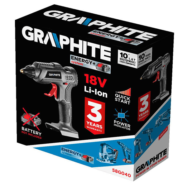 Pistol pt lipit cu batoane PVC/PE compatibil cu acumulator 18V ENERGY+ GRAPHITE 58G040 HardWork ToolsRange