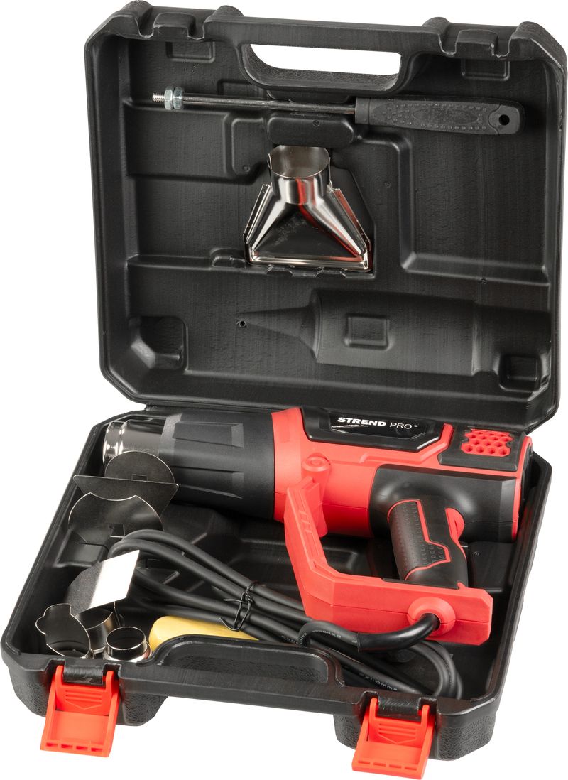 Teplovzdušná pištoľ Strend Pro HG203 s príkonom 2000 W je plne vybavená všetkým, čo k vašej práci môžte potrebovať. Je určená na aplikácie horúceho vzduchu pri zmenšovaní potrubí, spájkovanie konektorov, svoriek alebo uvoľnenie spájkovaných spojov, sušenie a odstraňovanie farieb či spájanie veľkoplošných lepidiel. Takisto účinne poslúži pri odmrazovaní schodísk, zámkov, vodovodného potrubia a chladničiek alebo pri dezinfekcii vzduchu a dreva.