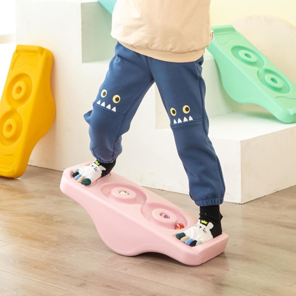 Labirintul cu bile stimuleaza perceptia senzoriala a copiilor si ajuta la imbunatatirea concentrarii acestora, in timp ce leganarea pe placa ajuta la antrenarea muschilor profunzi abdominali si ai spatelui. Si daca aveti mai multe placi de echilibru, puteti crea un parcurs improvizat pentru a va ajuta copilul sa-si dezvolte abilitatile motorii.