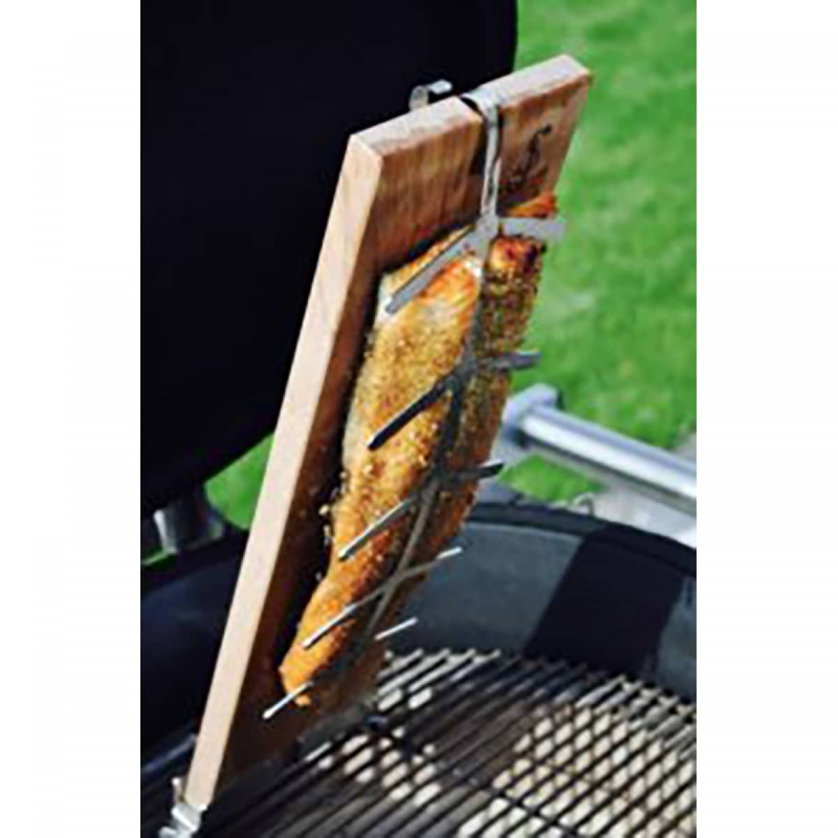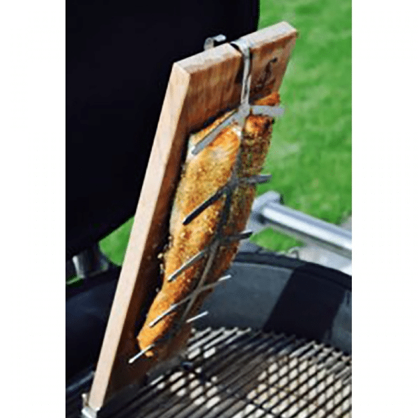 Placa de lemn pentru pește este un mod popular și rustic de preparare a somonului la foc deschis. Ceea ce are tradiție îndelungată în Finlanda și țările scandinave, devine din ce în ce mai popular și în restul Europei. Peștele preparat pe placa de lemn are un gust nu numai deosebit de bun dar de asemenea, este o adevarată experiență în pregătirea acestuia. Placa de lemn pentru pește este potrivită numai pentru modelele CLASSIC și LECHEF de la Monolith. Toate componentele metalice sunt din otel inoxidabil și se pot spăla în condiții de siguranță în mașina de spălat vase. Placa este relizată din lemn de fag și se poate utiliza pe ambele părți. Caracteristici:- Potrivit pentru modelele Monolith Classic și LeChef