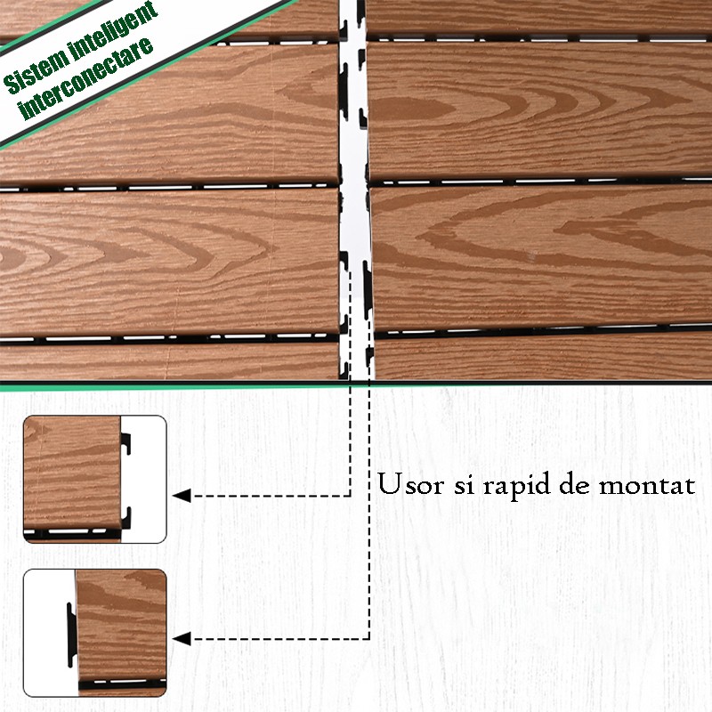- Sistem montaj: interconectare click, suport plastic tip grătar