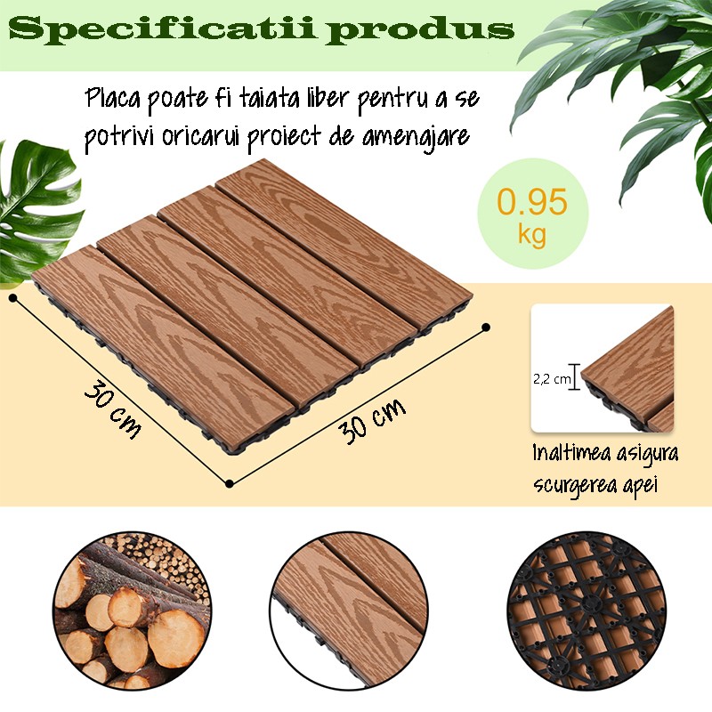 Specificatii Placă deck WPC terasă 30x30 cm,