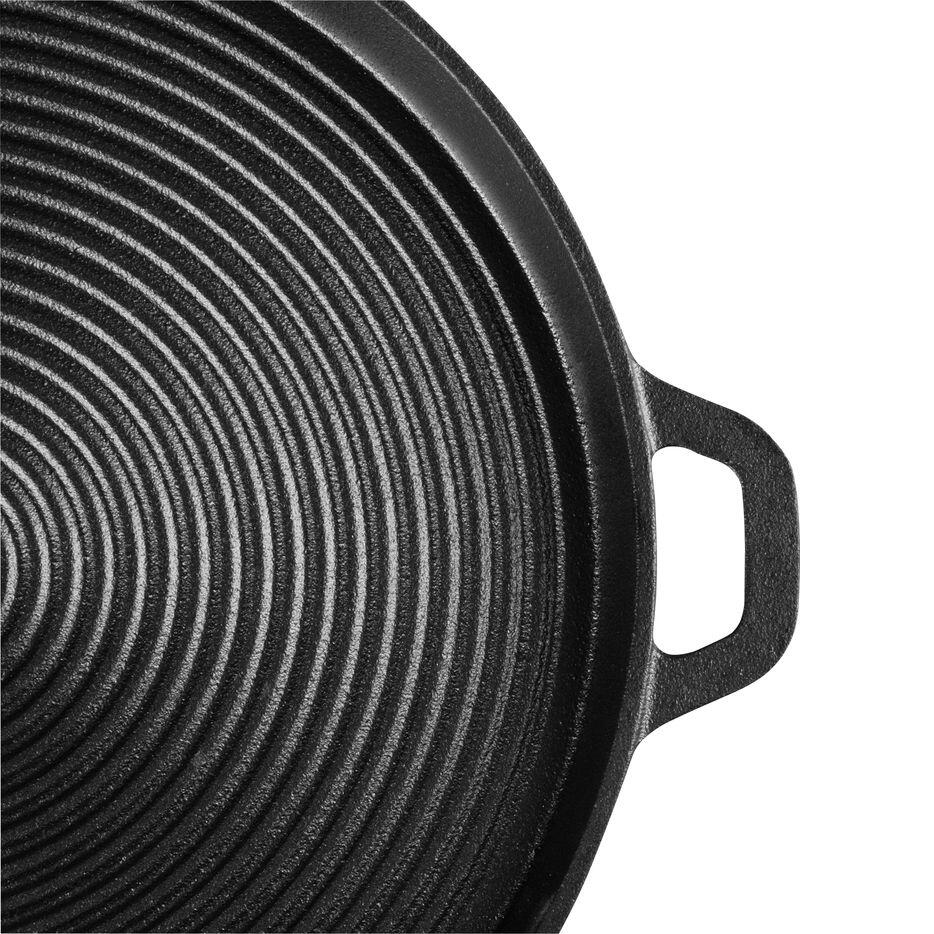- Forma sa rotunda o face compatibila cu o varietate de surse de caldura – de la gratare cu gaz sau carbuni, la aragazuri sau plite pe inductie. Mai mult, poate fi utilizata si in cuptor, ceea ce o transforma intr-un accesoriu extrem de versatil, potrivit pentru toate sezoanele si tipurile de gatit.