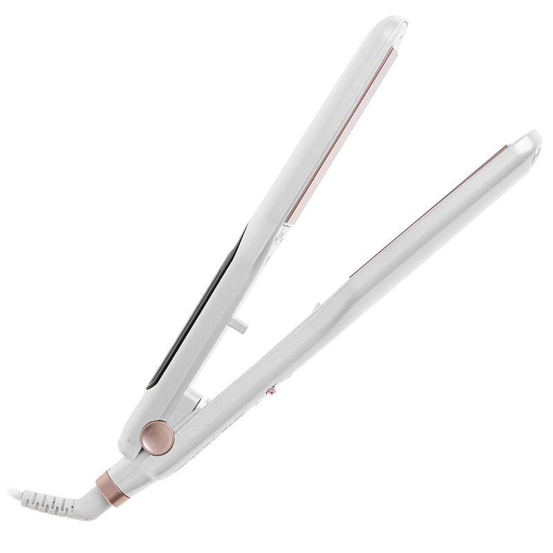Afișajul LCD alb, clar, permite monitorizarea ușoară a temperaturii, iar vârful rece asigură apăsarea în siguranță a plăcilor fără riscul de arsuri. Cablu de alimentare rotativ la 360 de grade și lungime de 180 cm oferă libertate totală de mișcare în timpul coafării, în timp ce blocarea mânerului face ca depozitarea dispozitivului să fie convenabilă.