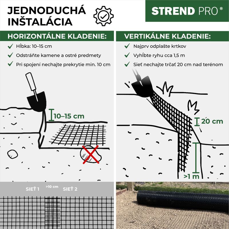 - Ajută la protecția gazonului și a solului împotriva cârtițelor (barieră mecanică).