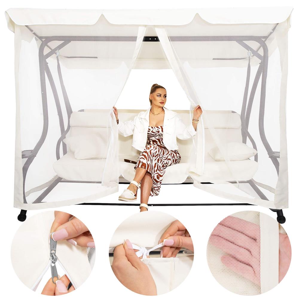 Bucura-te de mai mult confort in aer liber cu aceasta plasa antiinsecte pentru leagan de gradina, ideala pentru momentele de relaxare in zilele si serile calde. Realizata din poliester rezistent, in nuanta bej, plasa ofera o bariera eficienta impotriva tantarilor si altor insecte, fara sa blocheze aspectul placut al leaganului. Sistemul de inchidere cu fermoar pe toata inaltimea permite acces rapid si comod.