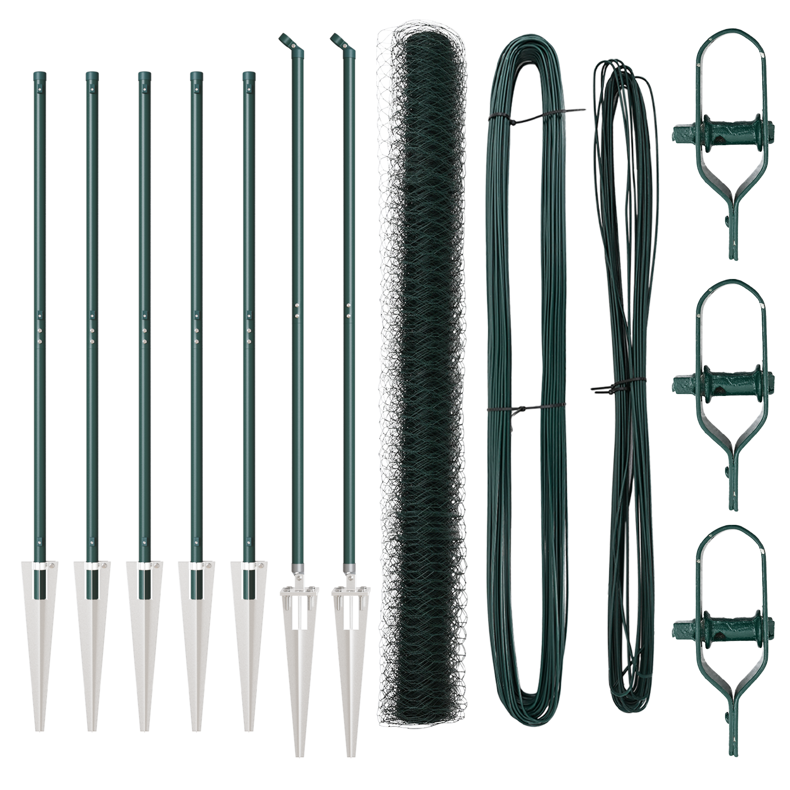 - Kit Complet: Vine cu tot ce ai nevoie, inclusiv stâlpi de plasă, rulou de plasă, fir de tensiune și ancore cu vârf, făcând instalarea ușoară.
