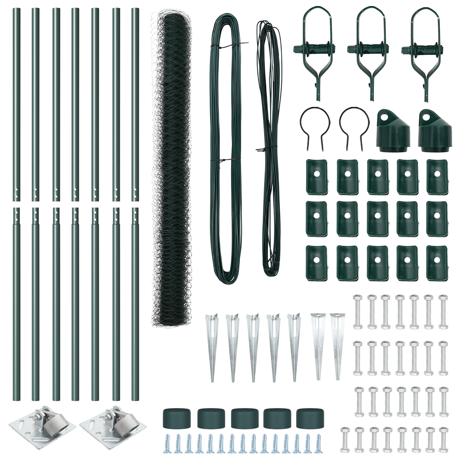Plasă hexagonală Verde 1.5x10 m Oțel, Stâlpi plasa cu vârf 7 buc Ø32 mm 170 cm Oțel galvanizat GartenMobel Dekor