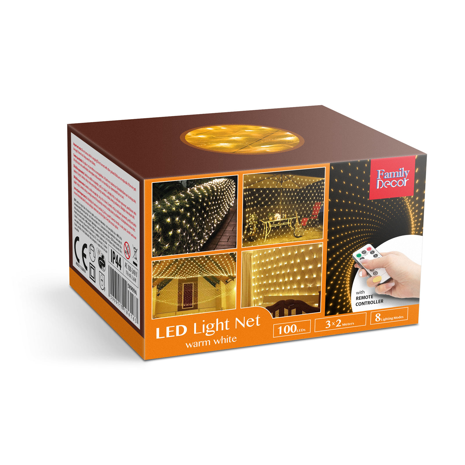 Plasă luminoasă LED - 190 LEDuri alb-calde - 3 x 2 m - 230V - cu telecomandă Best CarHome