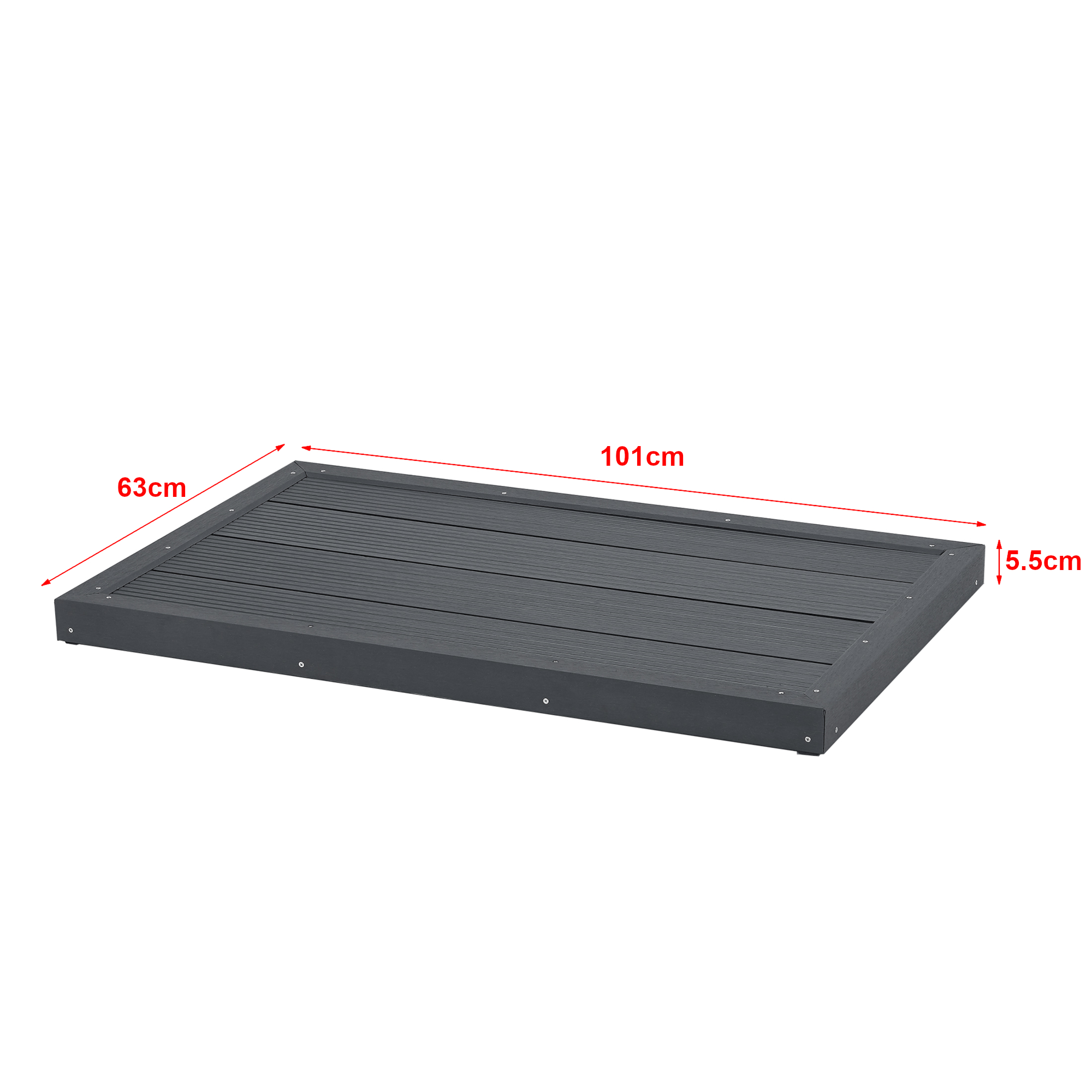 Poate fi folosită atât ca suport pentru duș solar, cât și ca bază stabilă pentru scară de piscină sau chiar ca un covoraș exterior rezistent. Profilul cu striații ajută la reducerea riscului de alunecare, iar cele 8 paduri anti-alunecare de pe partea inferioară oferă un plus de stabilitate pe diverse tipuri de suprafețe.