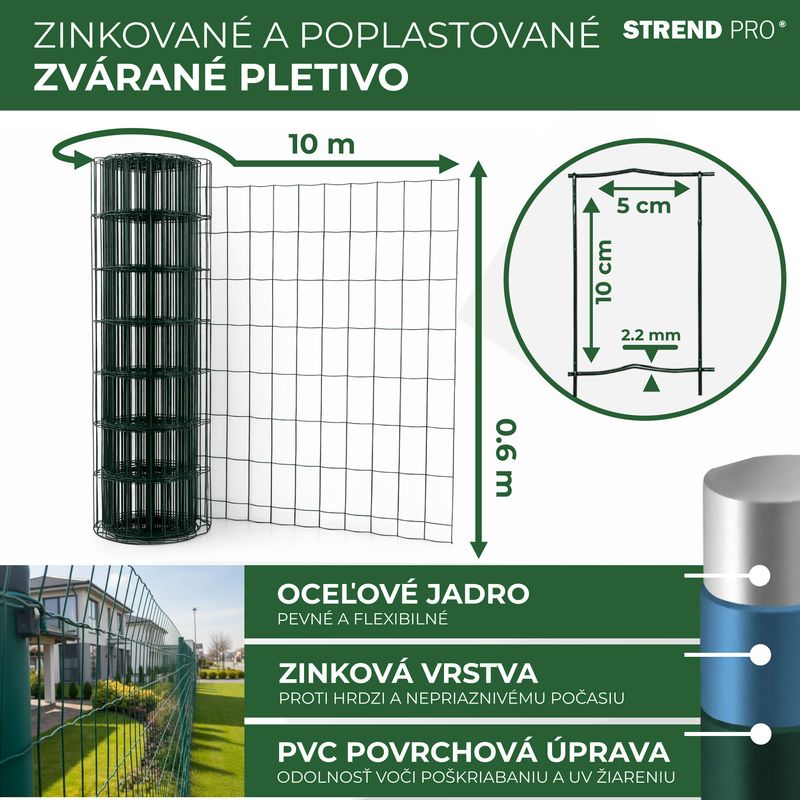 - Materiál: Pozinkovaná oceľ (Zn) s dodatočnou vrstvou PVC v elegantnej zelenej farbe (RAL 6005) poskytuje dvojitú ochranu proti korózii a UV žiareniu, čím predlžuje životnosť pletiva.