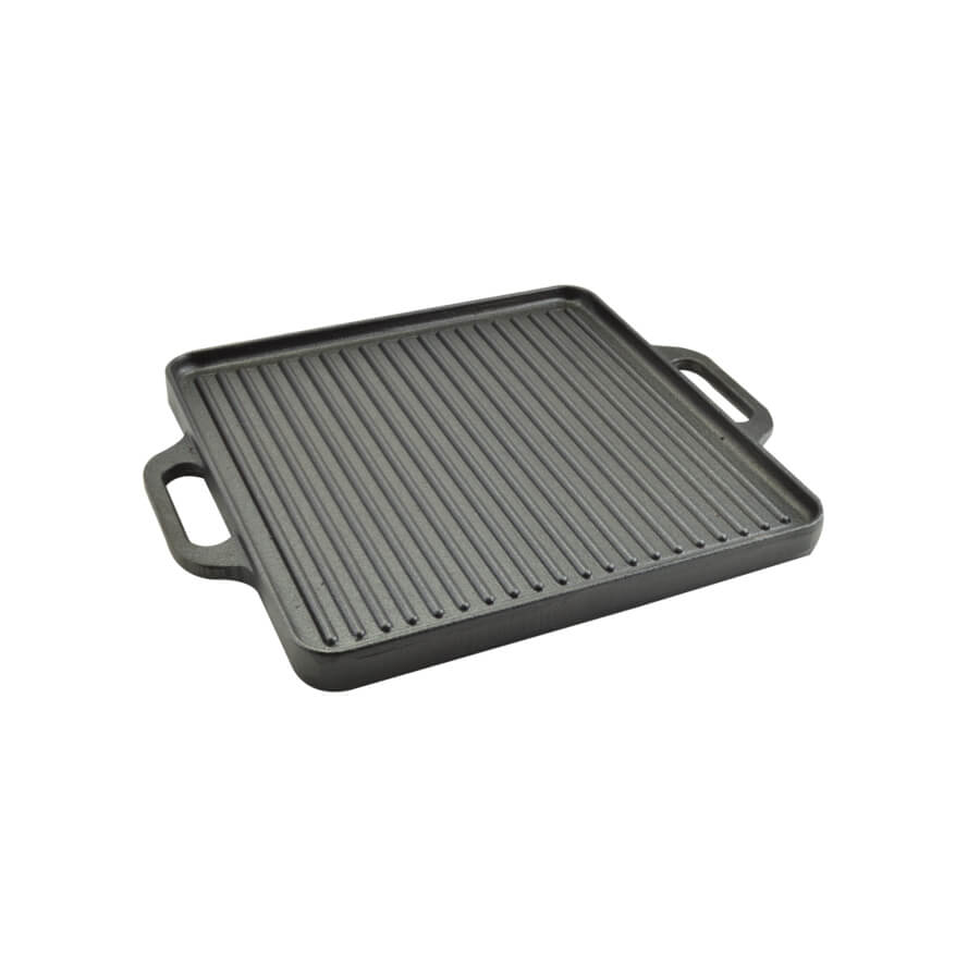 Plită din fontă cu mânere, 2 fețe, 42x42 cm pentru grătar și gătit