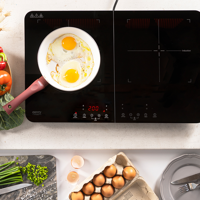Poate fi folosit pentru reîncălzirea sau pregătirea meselor care necesită utilizarea simultană a două oale sau tigăi.