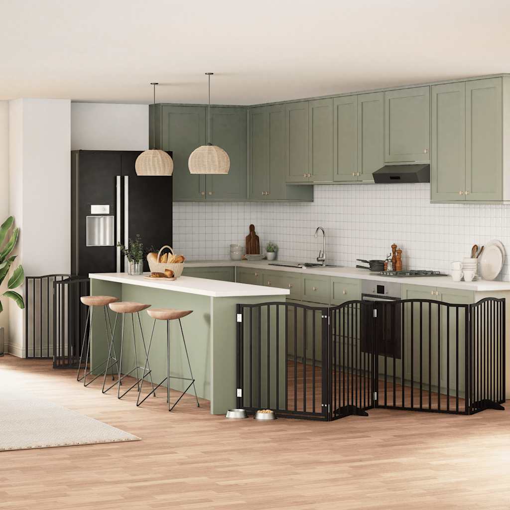 Poartă câini pliabilă cu ușă 10 panouri negru 800 cm, lemn plop GartenMobel Dekor