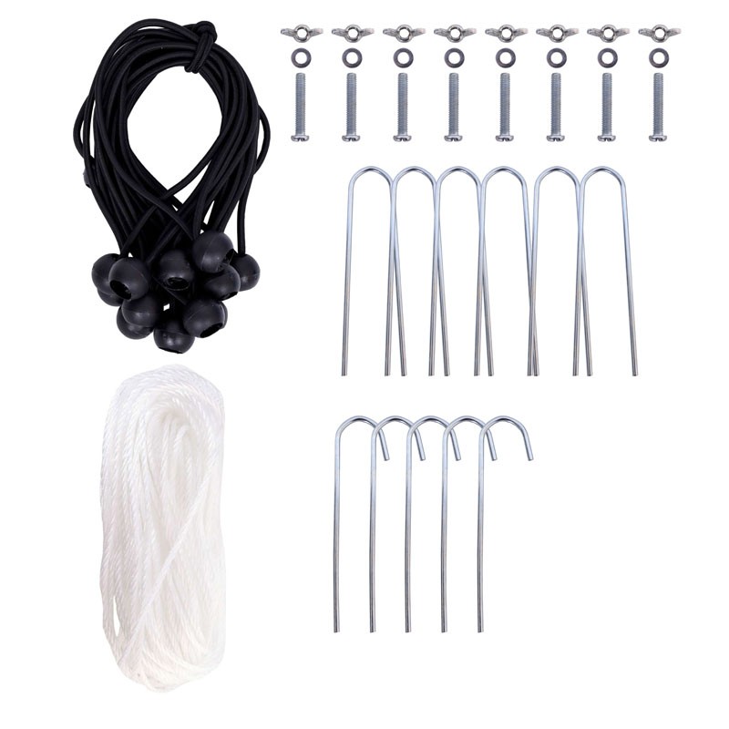 Pachetul conține: profile metalice, șuruburi cu fluture, instrucțiuni, plasă de fotbal, sfoară, ace de fixare la sol, elemente din cauciuc, țintă pentru antrenament.