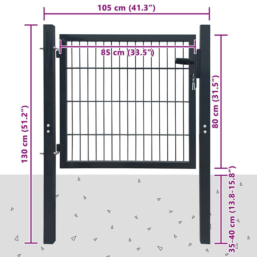 Sudată cu un fir vertical și două fire orizontale pentru un plus de rigiditate, poarta pentru grădină vă va asigura un grad sporit de siguranță, în timp ce va crea o cale de acces fabuloasă pe proprietatea dvs. Fabricată din oțel durabil, poarta este acoperită cu pulbere pentru a rezista împotriva ruginii și coroziunii.