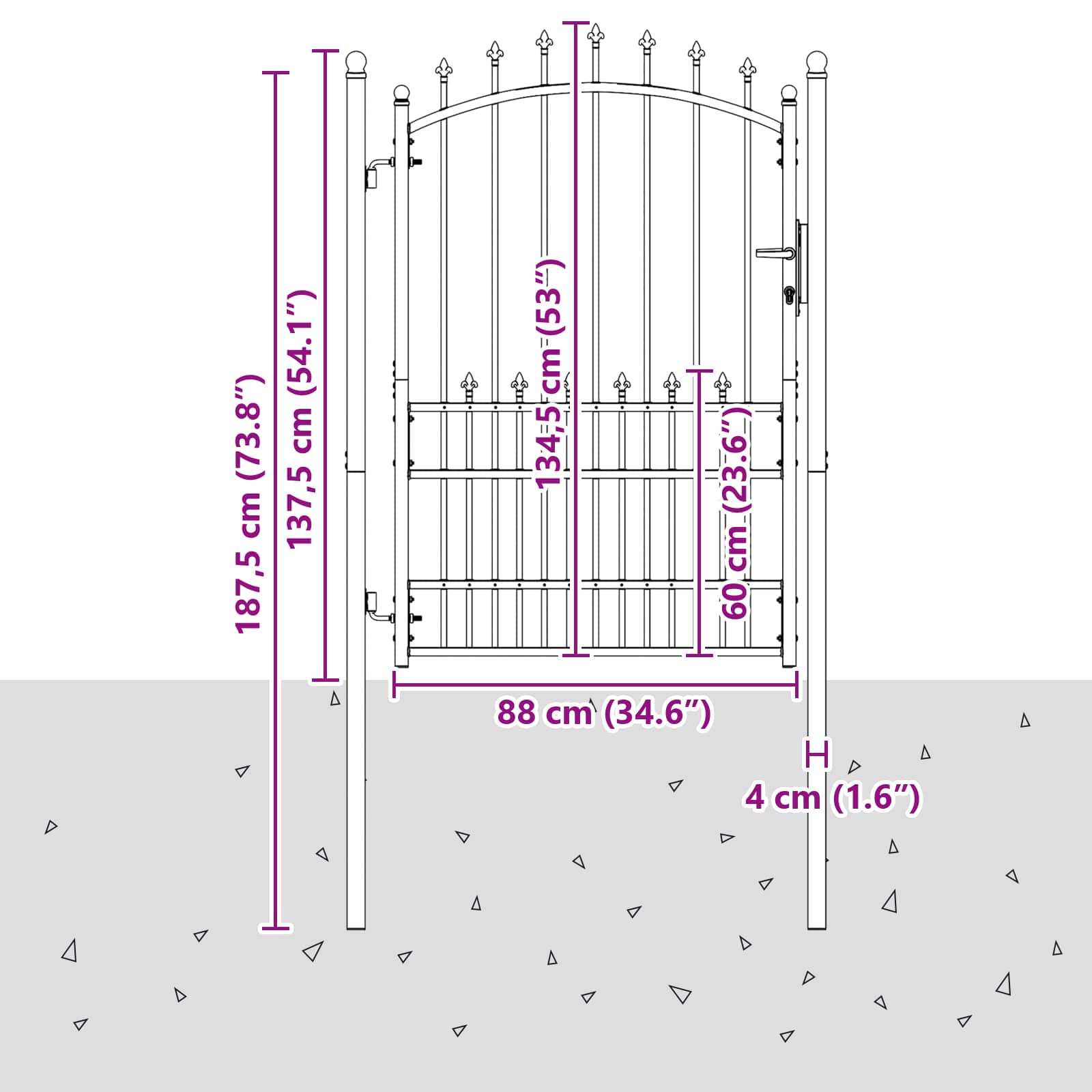 Poartă de gard cu țepi cu blocare Negru 100 x 175 cm GartenMobel Dekor