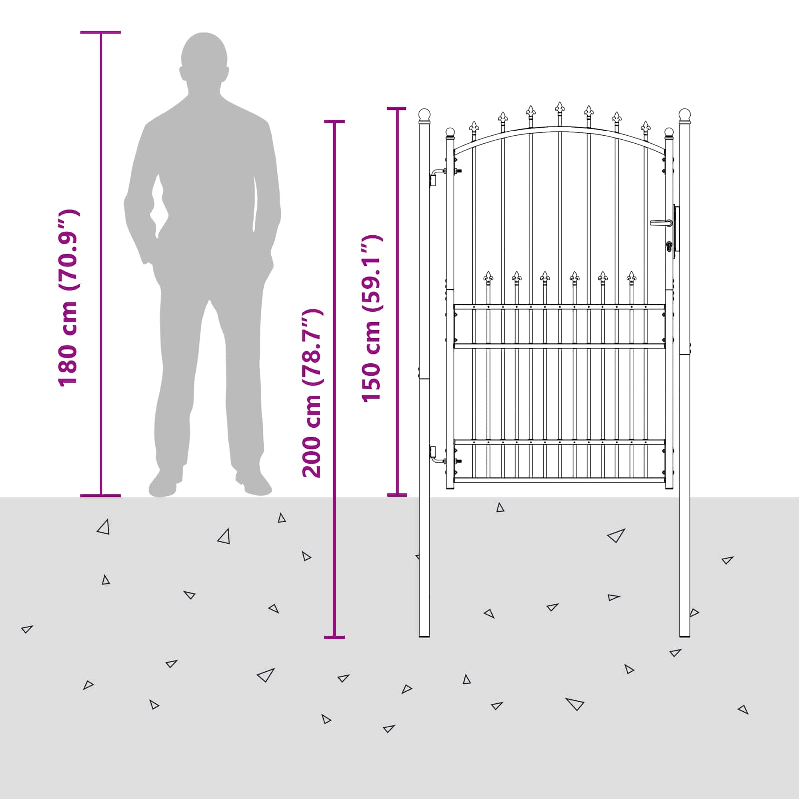 Poartă de gard cu țepi cu blocare Negru 100 x 200 cm GartenMobel Dekor