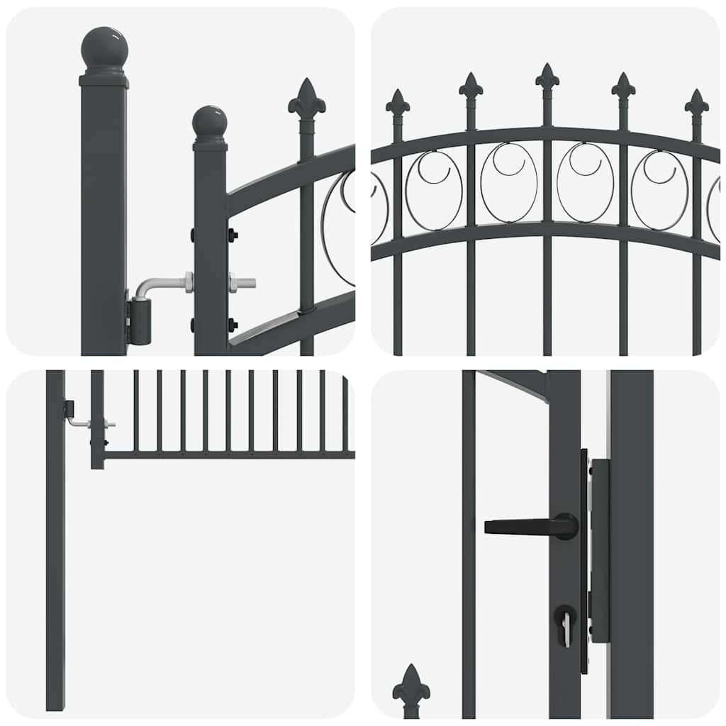 Poarta asta de gard cu țepi are un vibe simplu și modern, cu o structură elegantă din oțel vopsit electrostatic, având linii clare și detalii minime. E gândită pentru medii exterioare, ca grădini și terase, și oferă un mix super de stil și versatilitate. Designul cu vârf arcuit îi dă o notă elegantă, transformând-o într-un element stylish și funcțional pentru spațiile exterioare. Construcția sa robustă garantează performanțe de încredere în diferite condiții de vreme.