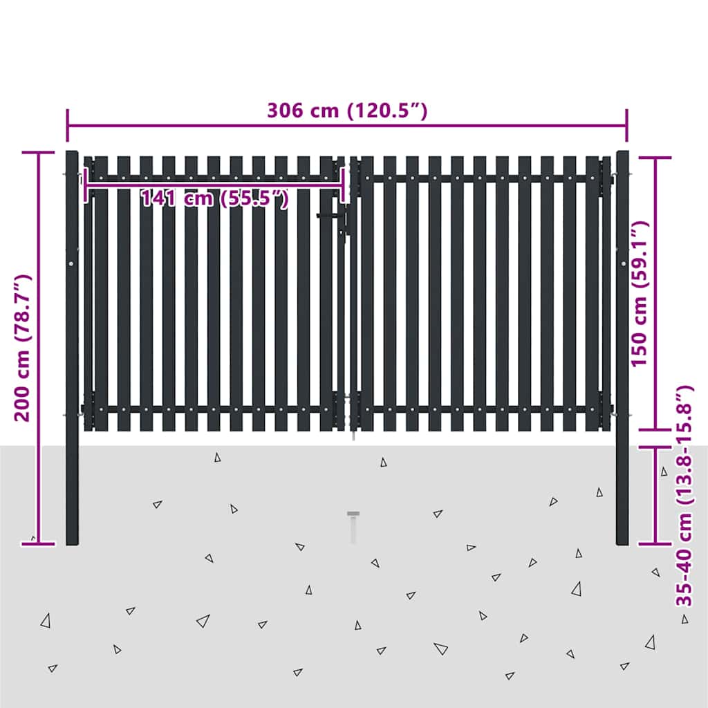 Poartă de gard cu ușă dublă, oțel, 300x150 cm, antracit GartenMobel Dekor
