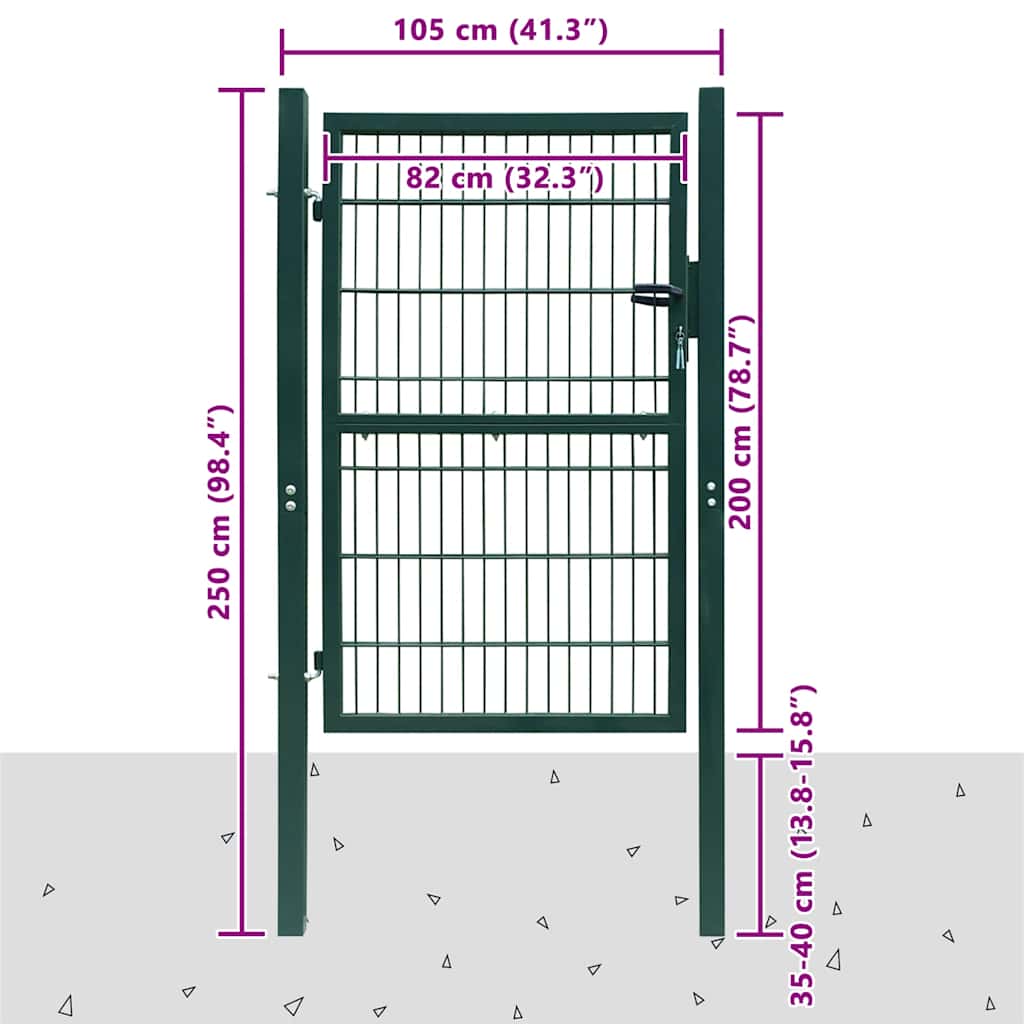 Poartă de gard din oțel, 100x200 cm, verde GartenMobel Dekor