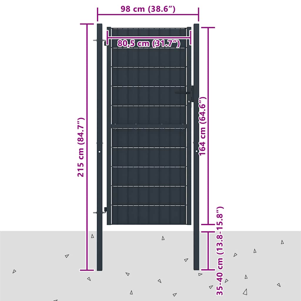 Poartă de gard din PVC și oțel, 100x164 cm, antracit GartenMobel Dekor