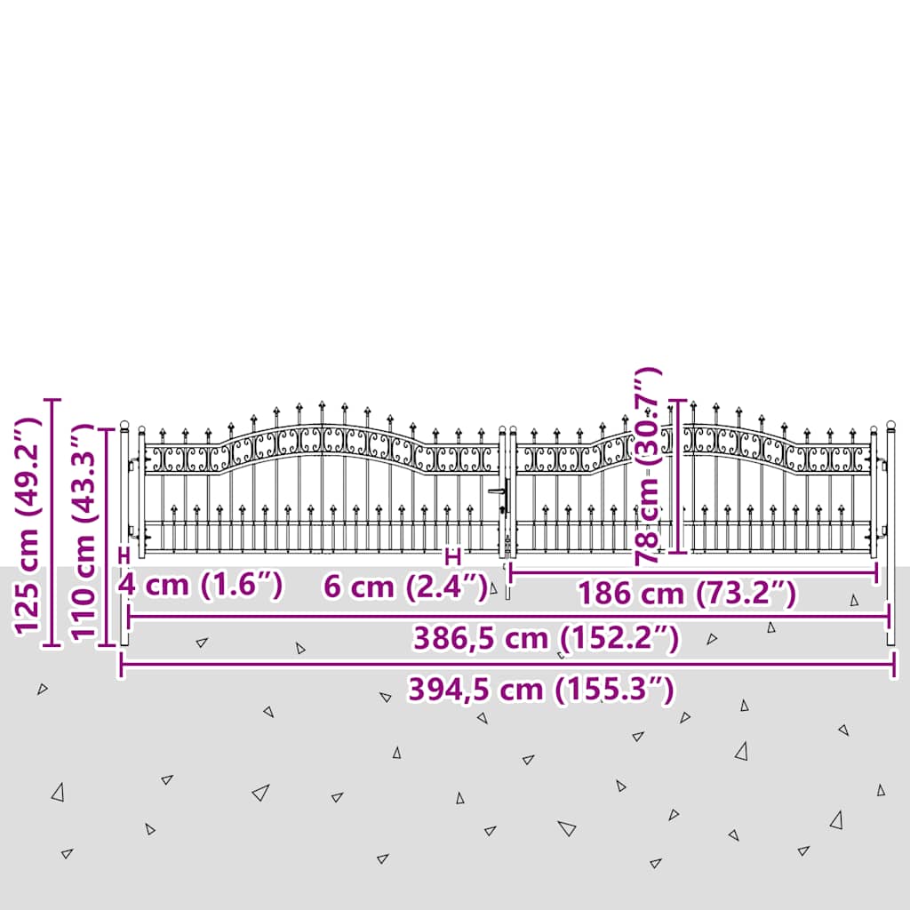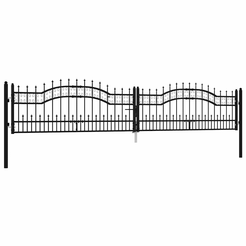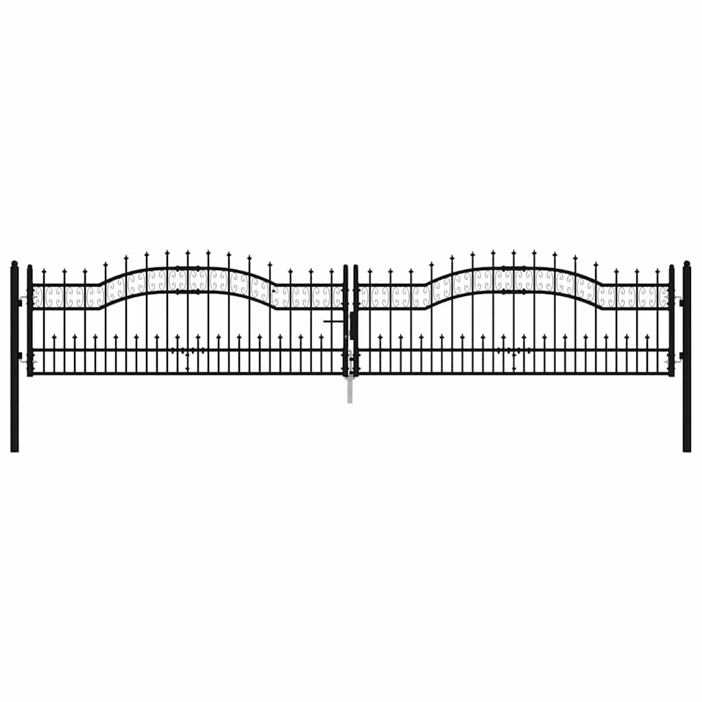 Poartă de gard Kampen cu vârf tip suliță, negru, 394,5x78 cm, oțel GartenMobel Dekor